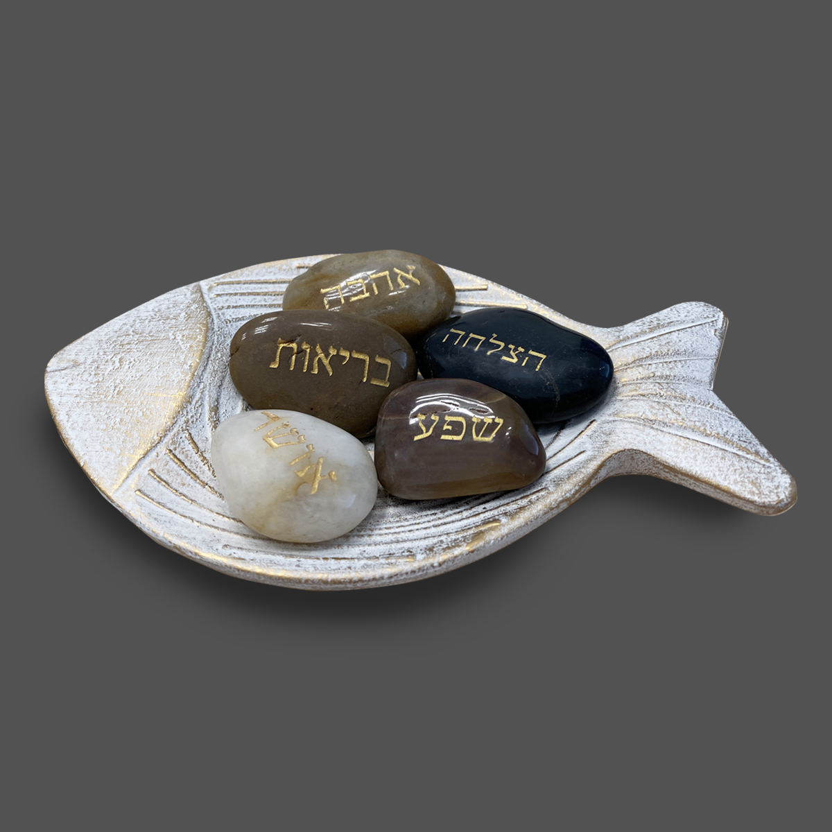 מארז של מגש עץ ואבני ברכה – דג המשאלות