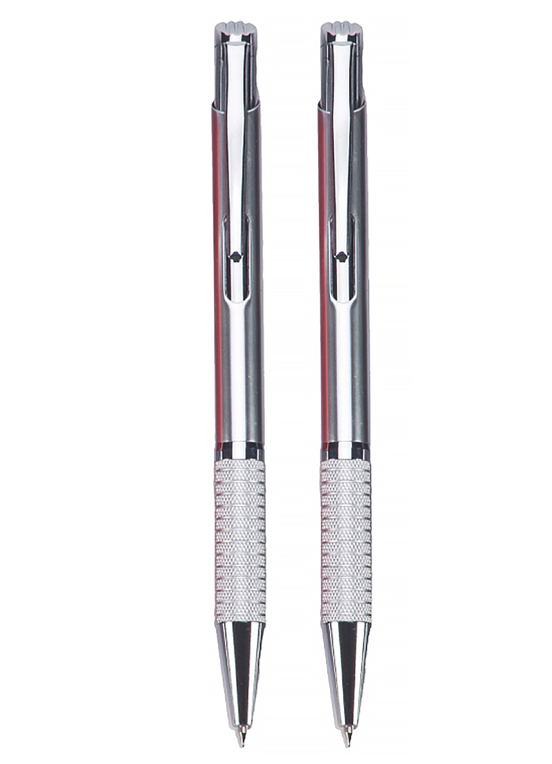 עט כדורי ועיפרון מכני גוף מתכת – סט כסיף